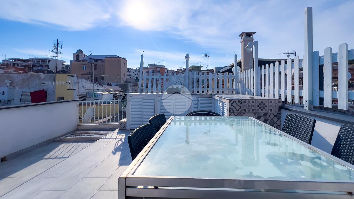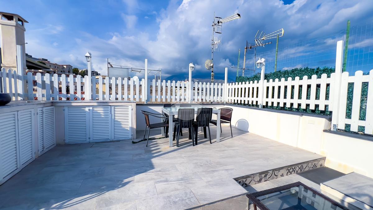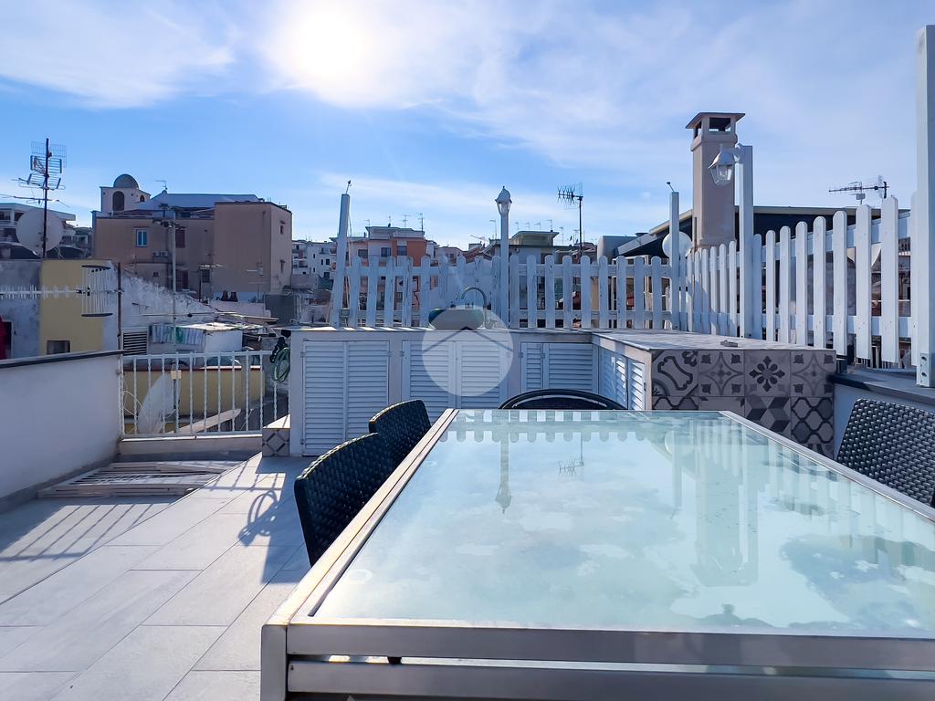 Al quarto piano si apre il terrazzo, completamente ristrutturato, un vero angolo di privacy e relax. Dotato di allacci idrici e muretti perimetrali, rappresenta uno spazio perfetto per pranzi o cene all’aperto, godendo della brezza marina e della tranquillità del cielo stellato sopra Gaeta.