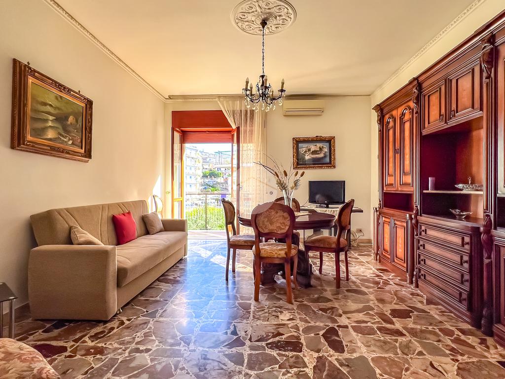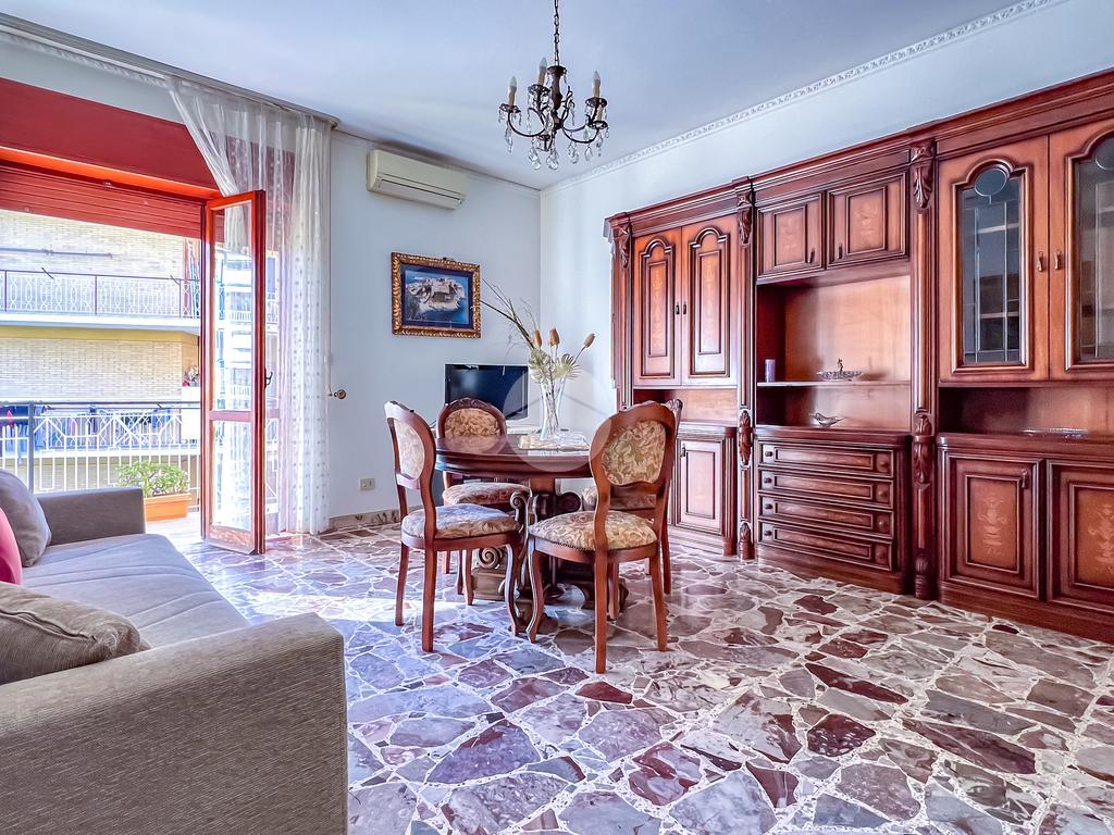 La zona giorno dispone di salone di ampia metratura climatizzato con accesso sulla prima ampia balconata, successivamente cucina abitabile anch'essa dotata di balconata,