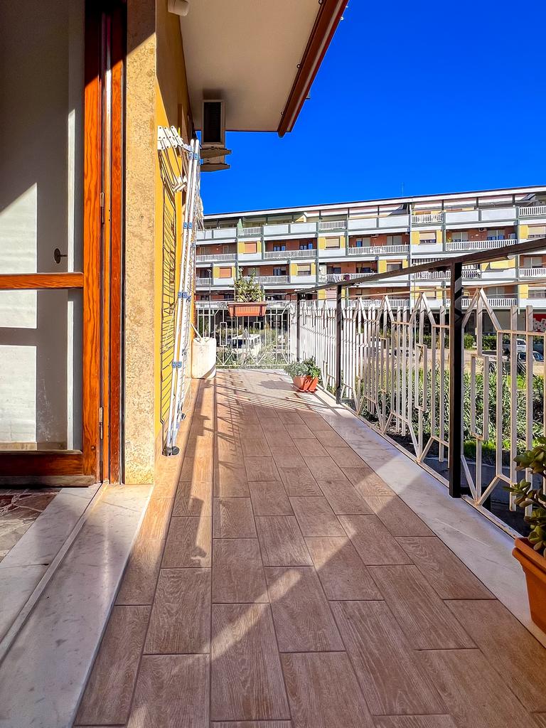 Nella zona notte, due camere da letto, entrambe con accesso diretto al balcone: una matrimoniale di 16 mq e una doppia di 12 mq. La presenza di due bagni rende l'appartamento adatto anche a nuclei familiari numerosi o a chi desidera maggiore comfort.
