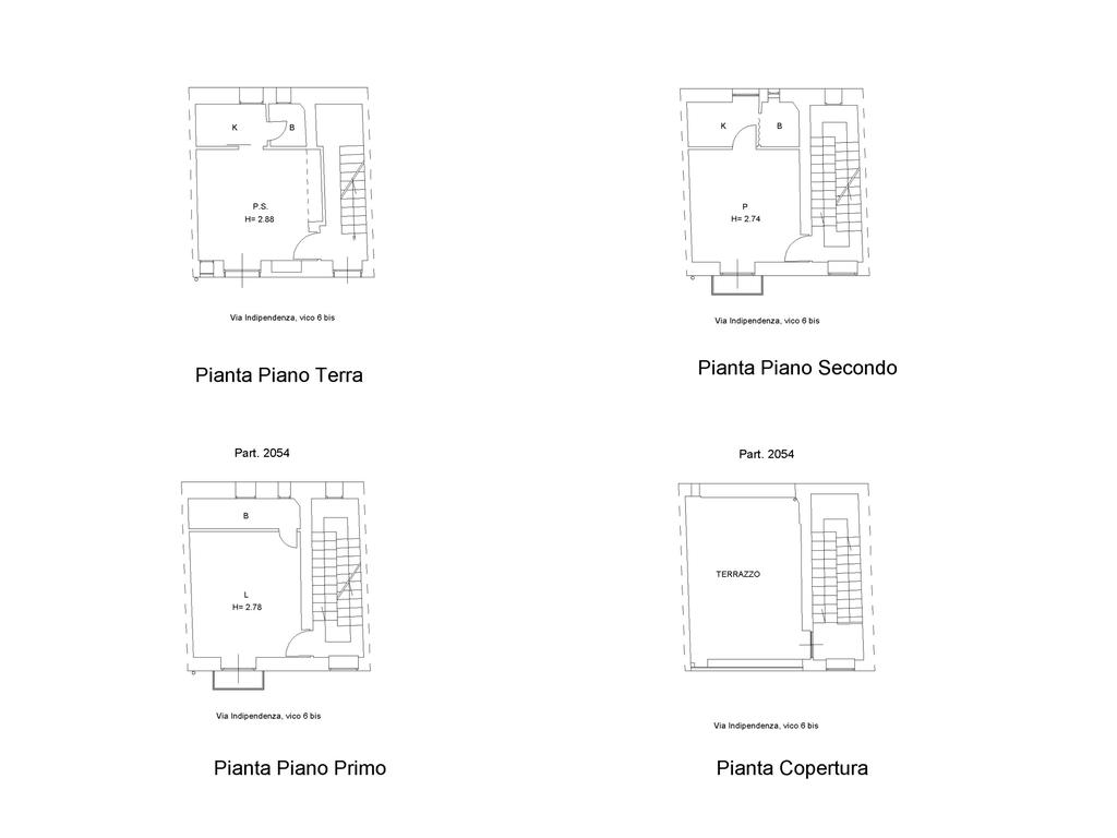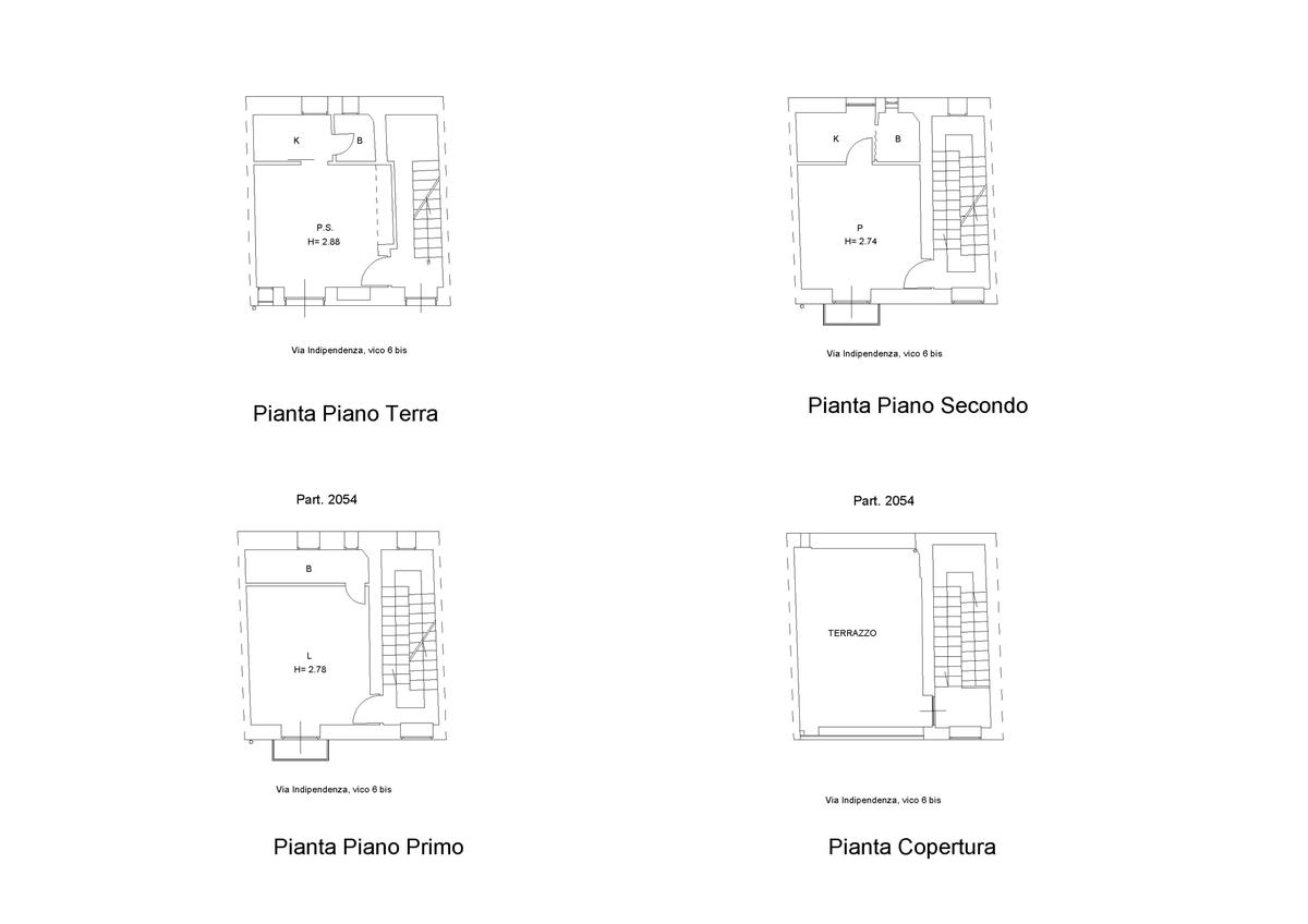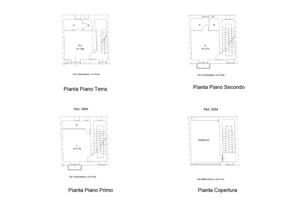 - Piano Terra: bilocale con doppio ingresso (uno indipendente e uno dal vano scala), soggiorno, cucinotto e bagno finestrato.