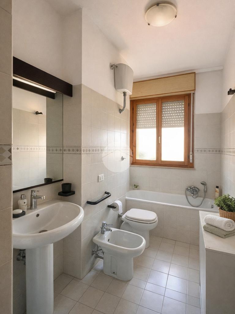 Completano la soluzione due bagni, entrambi finestrati: un bagno principale con vasca di 6,2 mq, un secondo bagno con doccia di 4 mq, funzionale e ben dimensionato.
